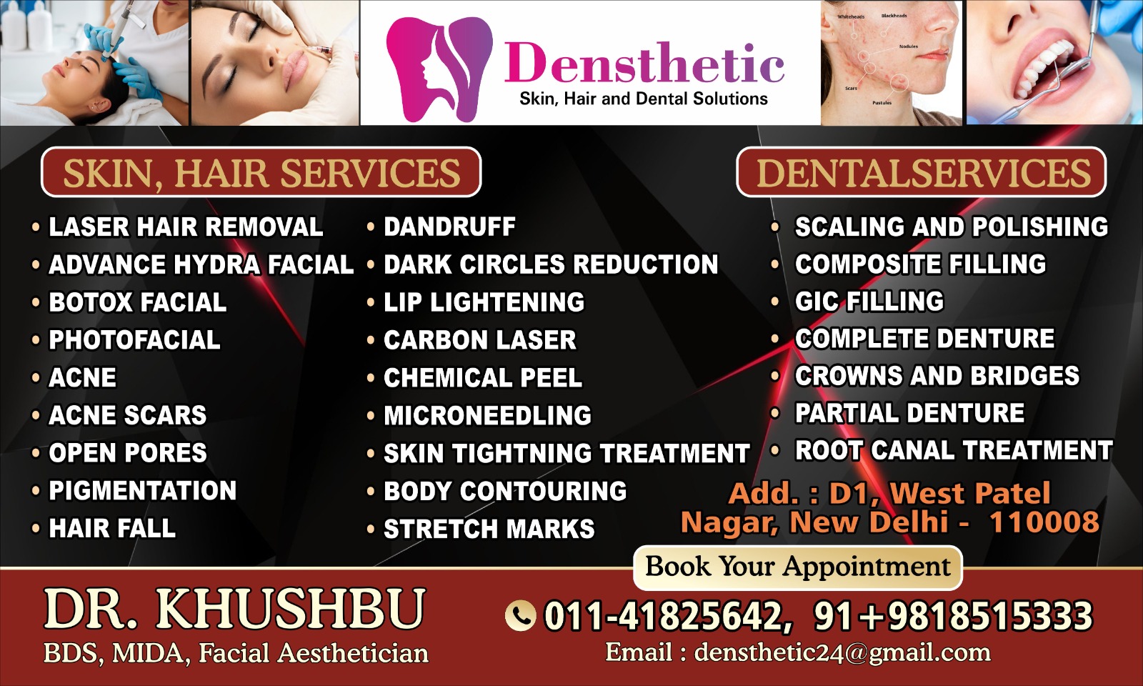 - Our Densthetic clinic in the Delhi offers customised treatment regimens based on each patient’s specific skin conditions and concerns.
